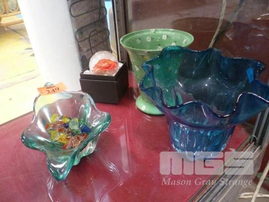 GLASS VASES, LOLLIES & POTTERY VASE