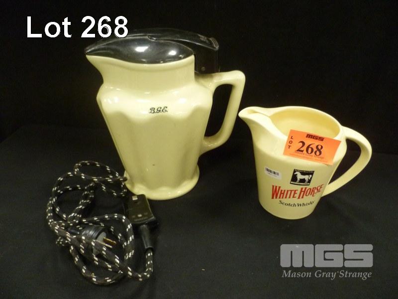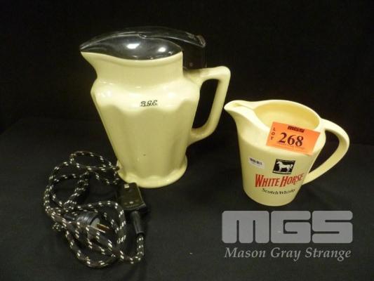 VINTAGE WADE WHITE HORSE WHISKEY JUG & VINTAGE BGR POTTERY KETTLE WITH CORD