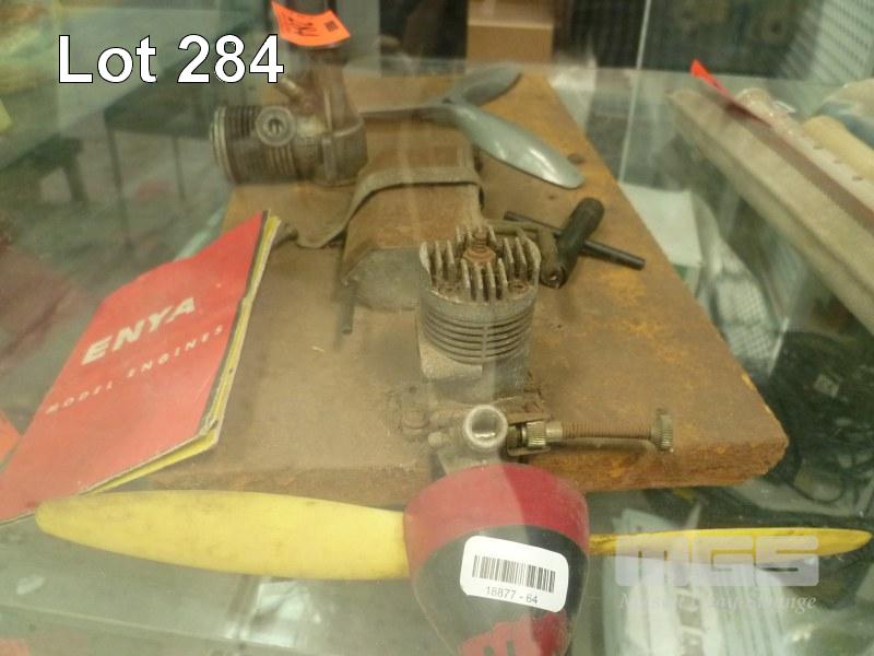 VINTAGE MODEL AEROPLANE ENGINE WITH 2 x PROPELLERS, ENYA MODEL ENGINES
