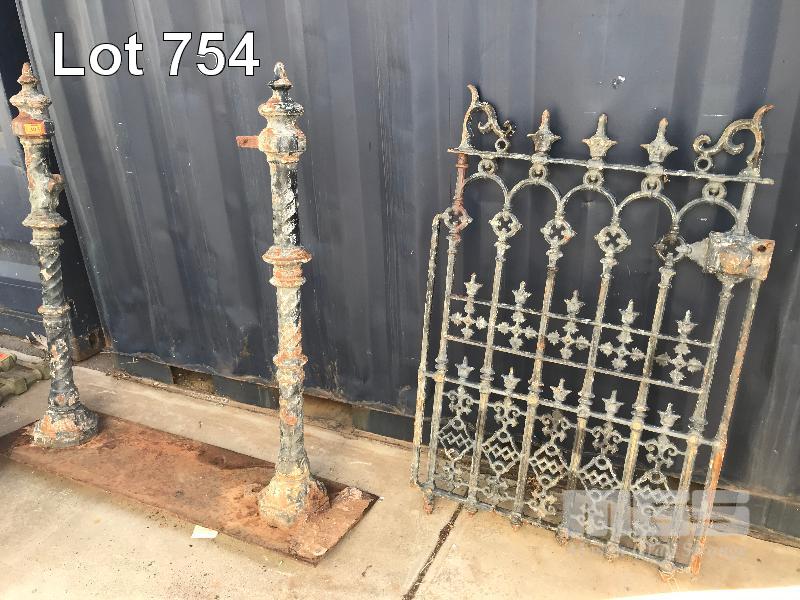 EARLY CAST IRON CEMETRY GATE 1800'S HEAVY CAST POSTS & GATES ON STEEL BASE PLATE