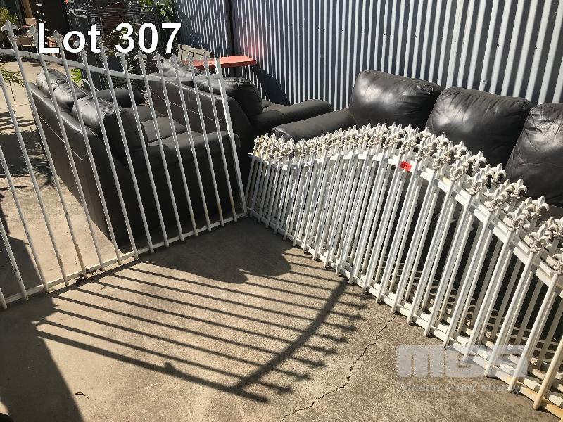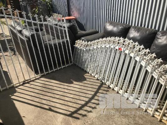 4 X WHITE TUBULAR STEEL ARCHED FENCE PANELS & 2 PIECE GATE