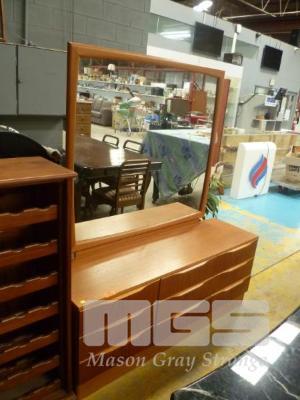 MID CENTURY TEAK MIRROR BACKED BEDROOM DRESSER