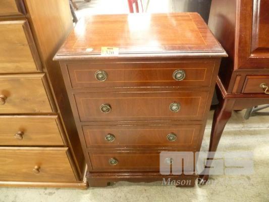 MAHOGANY RECORD CABINET WITH SILKWOOD INLAY, HINGED TOP & FALSE DRAWER, SINGLE DOOR FRONTAGE