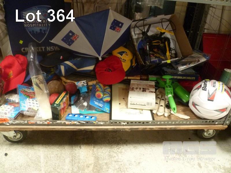 ASSORTED SPORTING EQUIPMENT, HATS, GAMES, ETC
