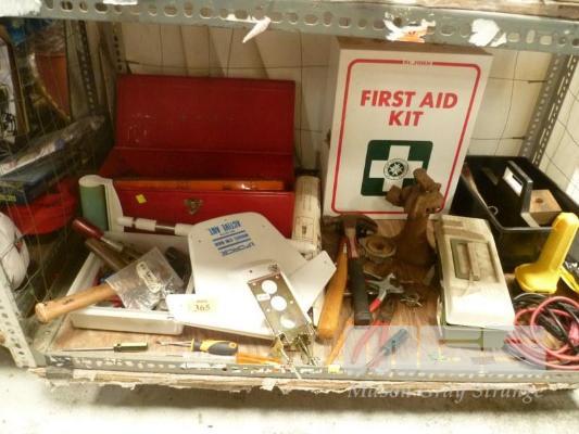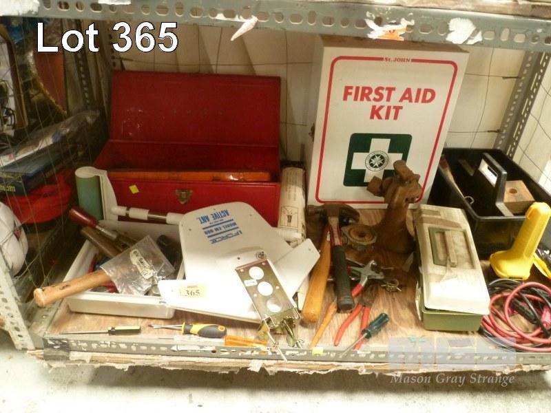 ASSORTED HAND TOOLS, FISHING TACKLE, iFORCE ANTENNA, ETC