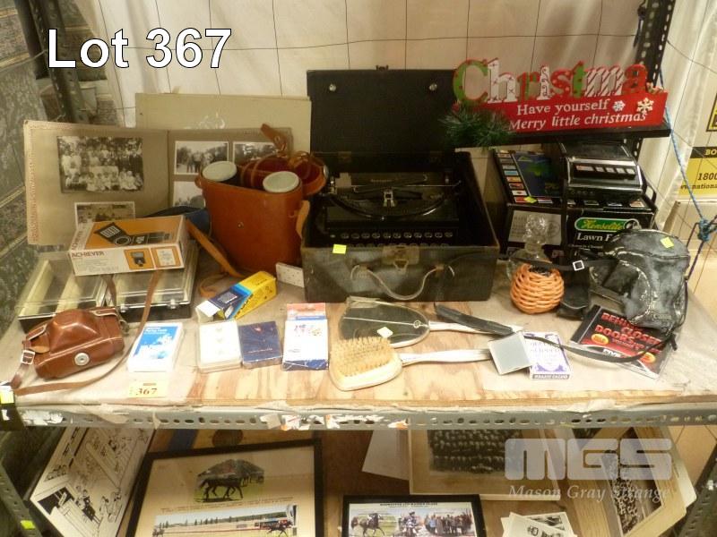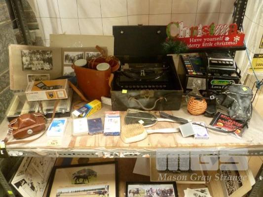 VINTAGE REMINGTON TYPEWRITER, BINOCULARS, LAWN BOWLS, CAMERAS, ETC