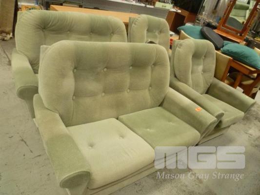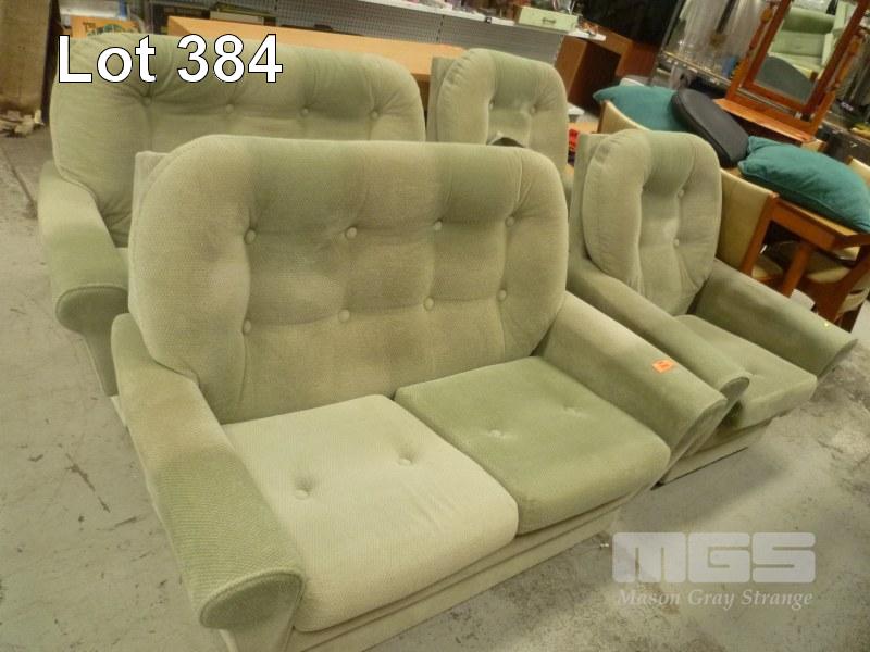 GREEN FABRIC LOUNGE SUITE, 4 PIECE, 2 x ARM CHAIRS & 2 x 2 SEATER SOFAS