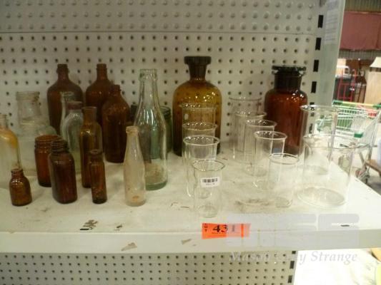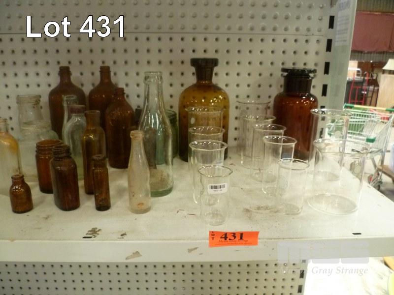 ASSORTED VINTAGE BOTTLES, PYREX BEAKER SETS, ETC