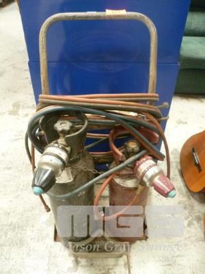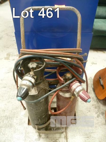 OXY ACETYLENE WELDING TROLLEY, HOSES, HAND PIECE & GAUGES
