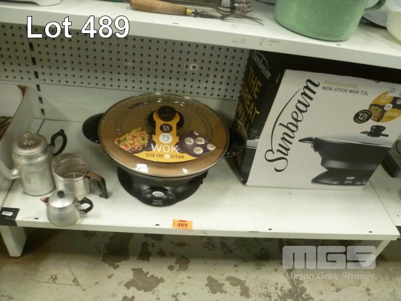 BRAND NEW SUNBEAM WOK, NON-STICK, 7.5 LITRE & VINTAGE TEAPOTS