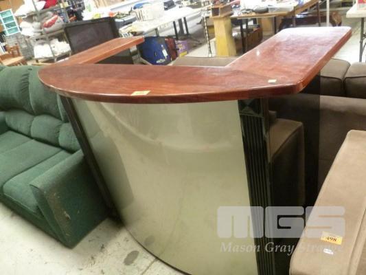 BAR, SILVER FACADE WIT HARDWOOD TOP, CAESAR STONE SERVERY, GLOSS BLACK SIDES, 150 (W) x 115 (H) x 80cm (D)