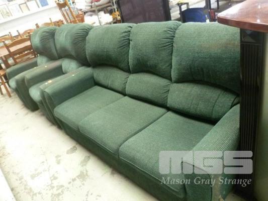 GREEN FABRIC 3 PIECE LOUNGE SUITE INCLUDING 3 SEATER & 2 x SINGLES, (WEAR MARKS)