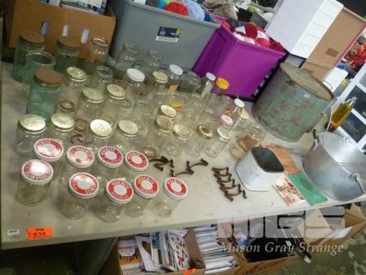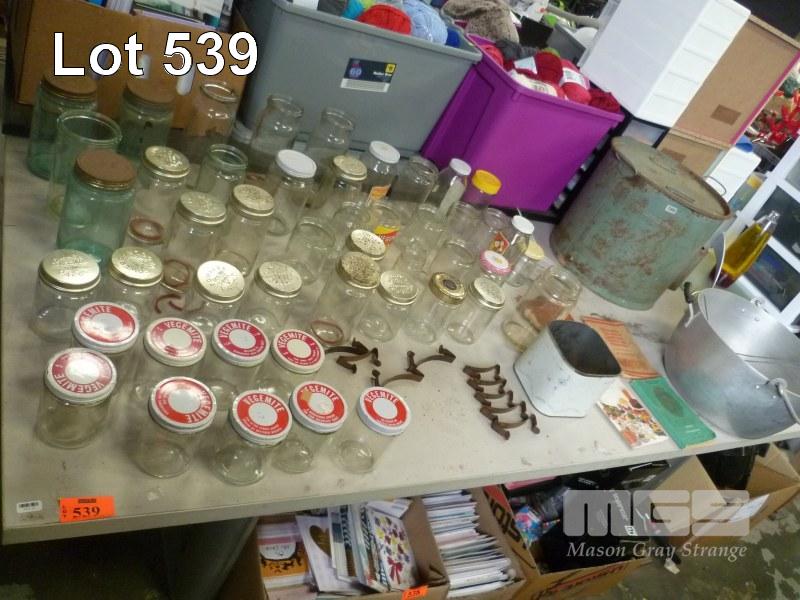 FOWLERS VACOLA PRESERVING JAR KIT IN C LIDS, LID HOLDERS &VINTAGE VEGEMITE JARS, ETC