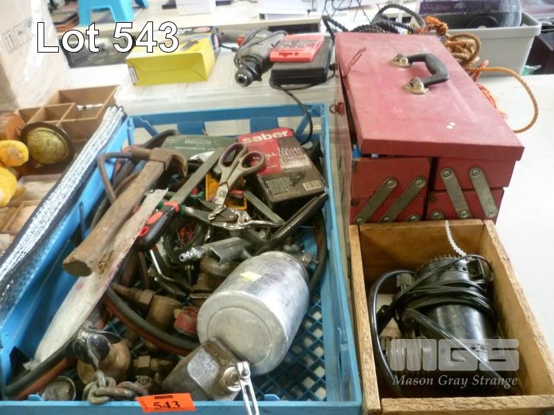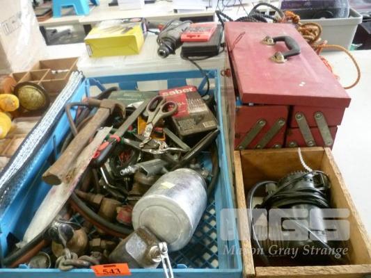 ASSORTED TOOLS, TOOL BOX & ROPES