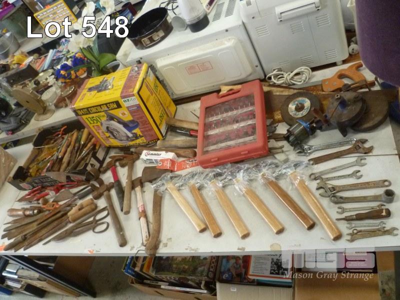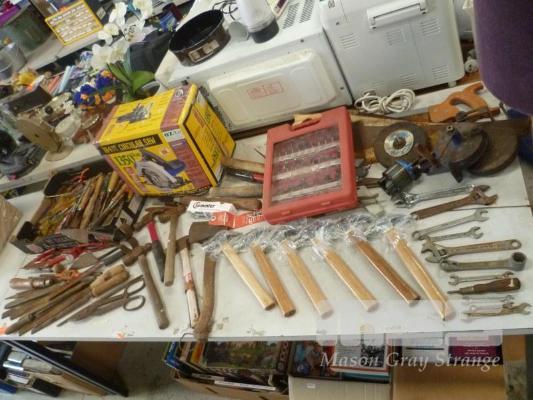 VARIOUS HAND TOOLS, 1 x TABLE