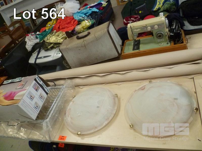 PAIR OF MURANO GLASS CEILING LIGHTS, STERLING SEWING MACHINE, HP ALL IN ONE, BLINDS, PRO-SHIATSU & DISH DRAINER
