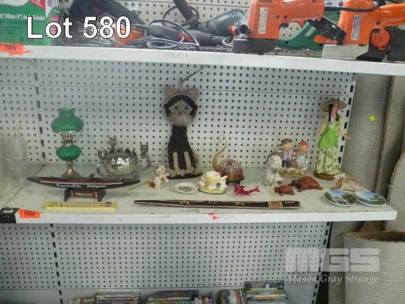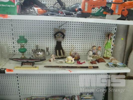 VINTAGE CHINA INC GLASS SWAN & FISH, RETRO NET CAT, KERO LAMPS, ETC