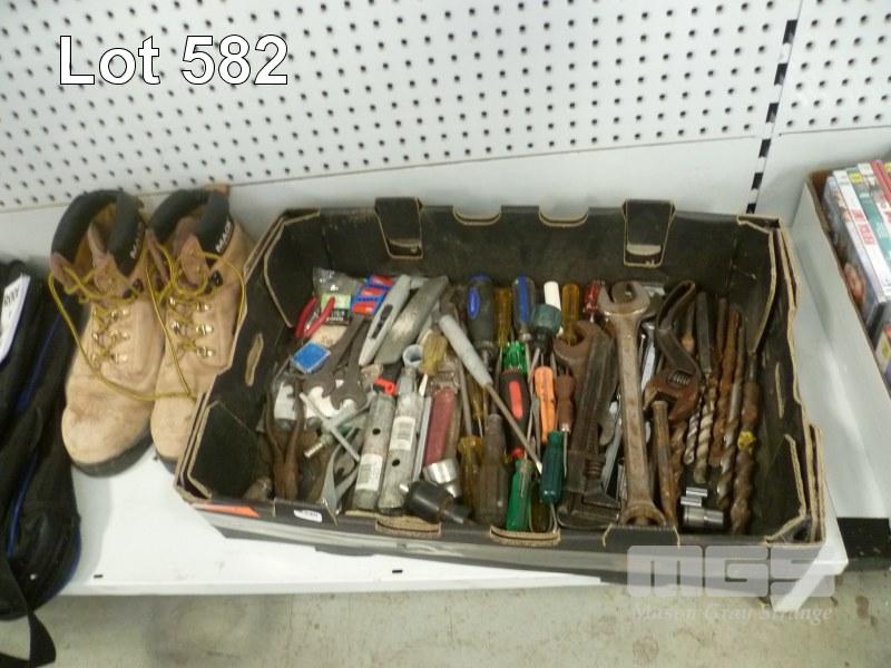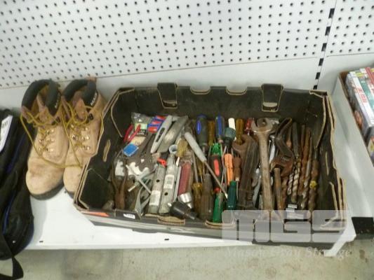 ASSORTED HAND TOOLS & MACK WORK BOOTS