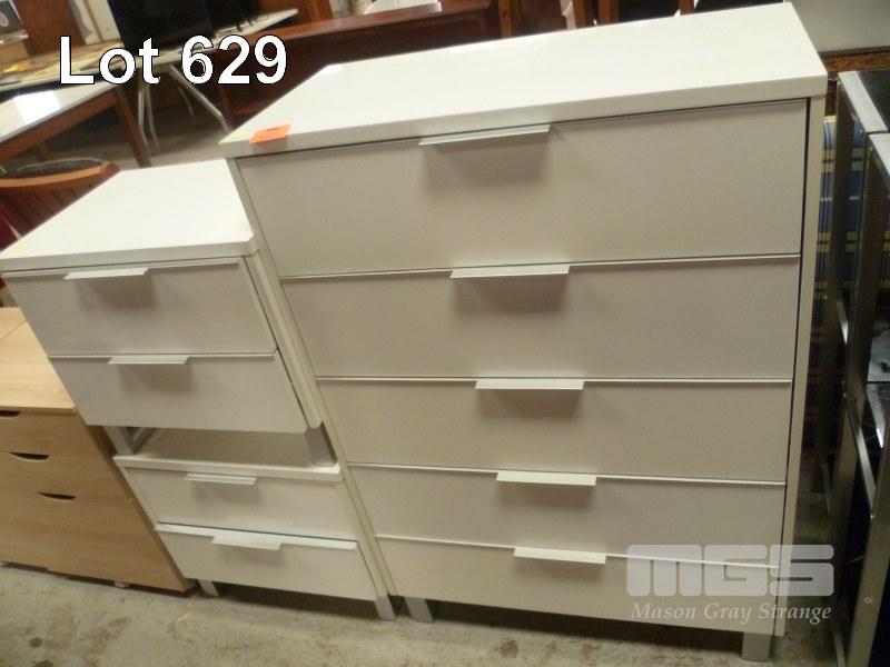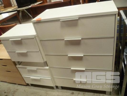 WHITE GLOSS 3 PIECE BEDROOM SUITE INC 5 DRAWER TALLBOY & PAIR BEDSIDE CABINETS
