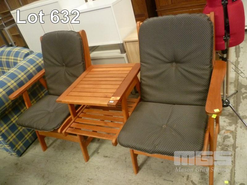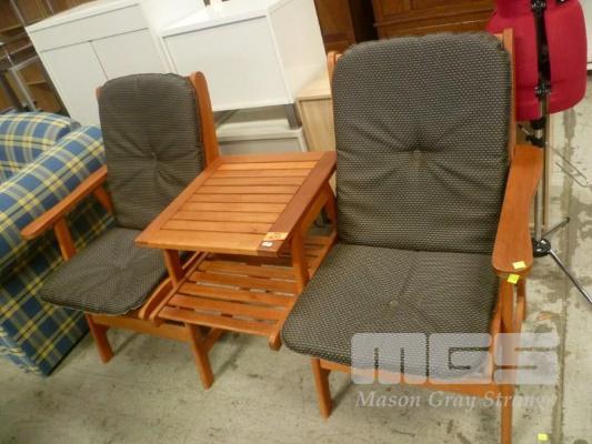 TIMBER OUTDOOR SETTING, SINGLE PIECE WITH DUAL SEATS & CENTRE TABLE