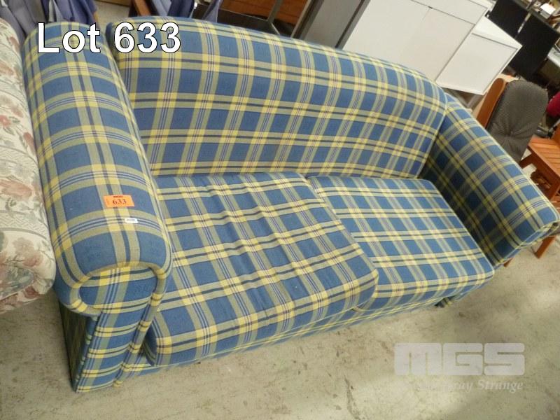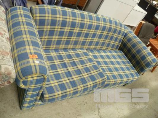 BLUE/YELLOW FABRIC SOFA BED, 2.5 SEATER