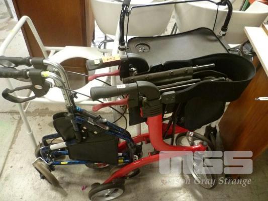 3 x ASSORTED MOBILITY WALKERS & ASSIST CHAIR