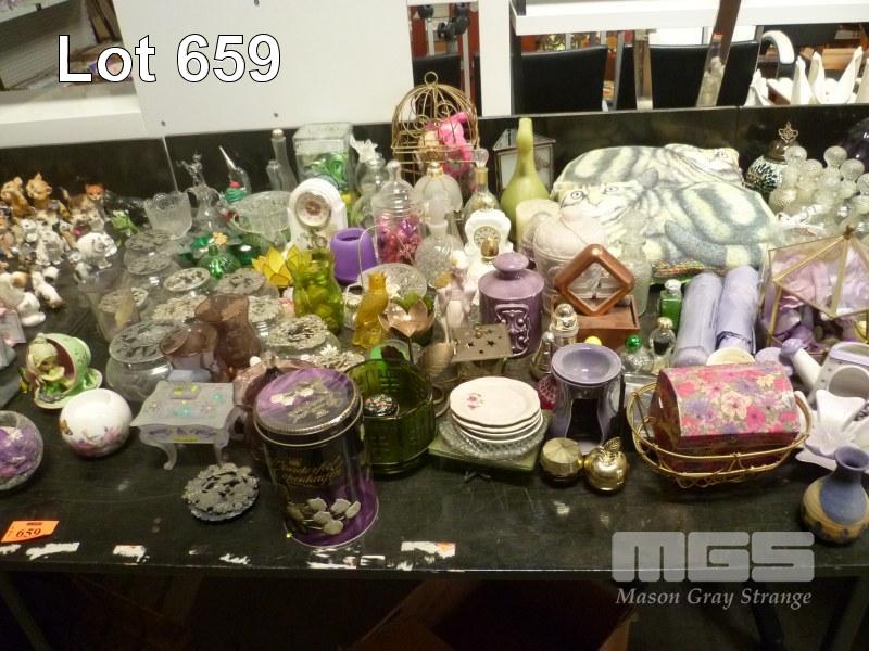 ASSORTED BOWLS, JARS, ETC, 1 x TABLE