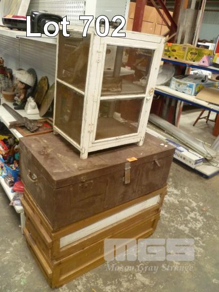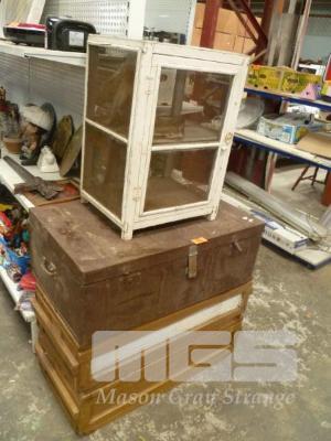 VINTAGE MEAT SAFE, METAL TRUNK & AMMO BOXES