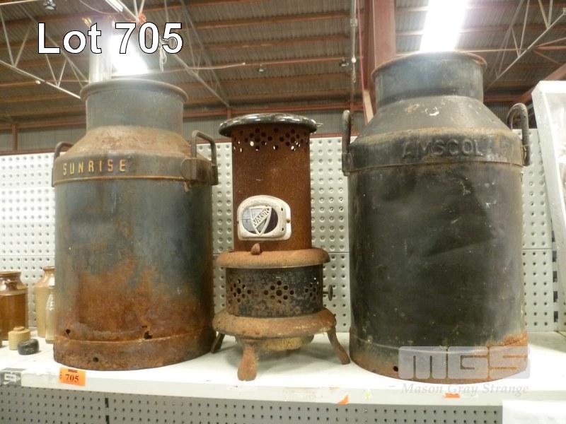 2 x VINTAGE CREAM CANS, VALOR HEATER