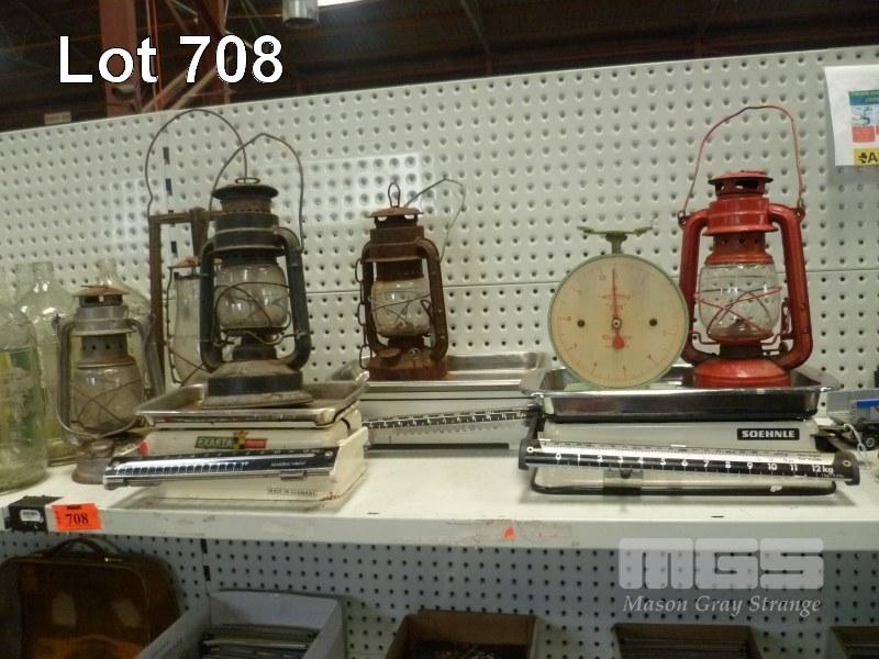 VINTAGE SCALES & HURRICANE LAMPS, 1 x BAY