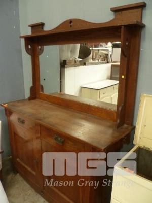OAK SIDEBOARD, MIRROR BACK, 2 DRAWER/DOOR