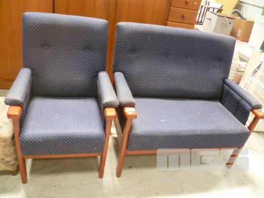 TIMBER FRAME, BLUE FABRIC 2 PIECE LOUNGE SUITE INC 2 SEATER & SINGLE SEATER