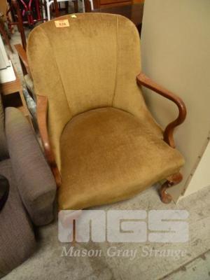 ART DECO ARM CHAIR, BEIGE VELVET, TIMBER FRAME