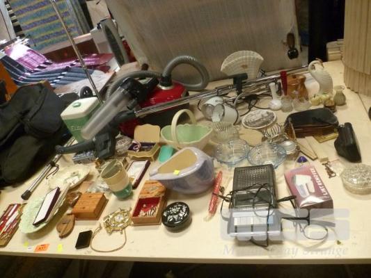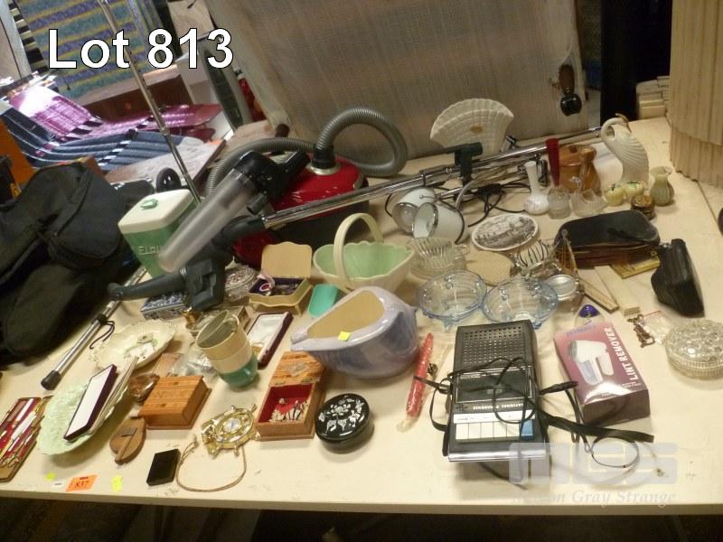 ASSORTED VASES, JEWELLERY BOXES, ORNAMENTS, ETC, 1 x TABLE