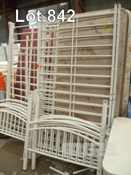 2 X METAL FRAME BUNK BEDS WITH 3 X SINGLE MATTRESSES