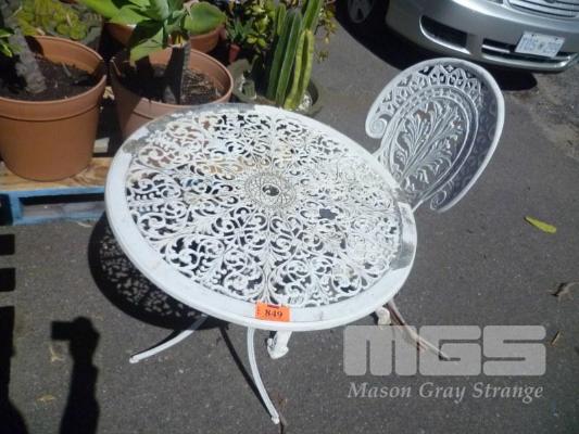 CAST ALUMINIUM ROUND OUTDOOR TABLE WITH CHAIR