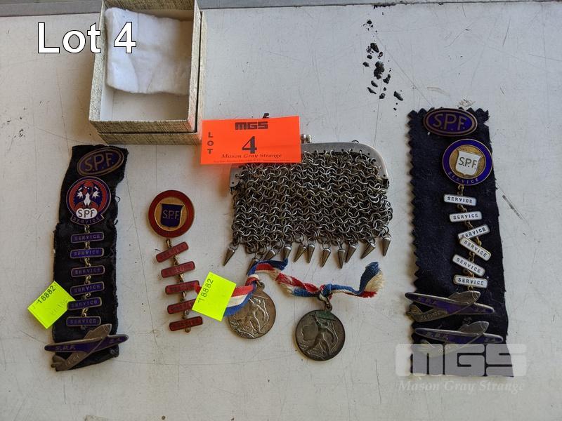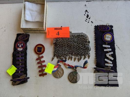 COLLECTION SPF SERVICE PINS, BADGES & MEDALS & CHAIN MESH PURSE