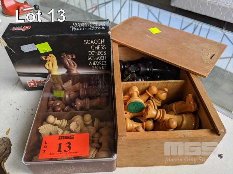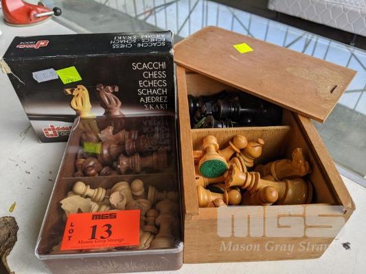 3 x SETS CHESS PIECES, CARVED WOOD
