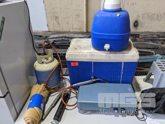 WILLOW ESKY, WATER VESSEL, GAS BLOW TORCH, CAMP STOVE, GREASE GUN, ETC
