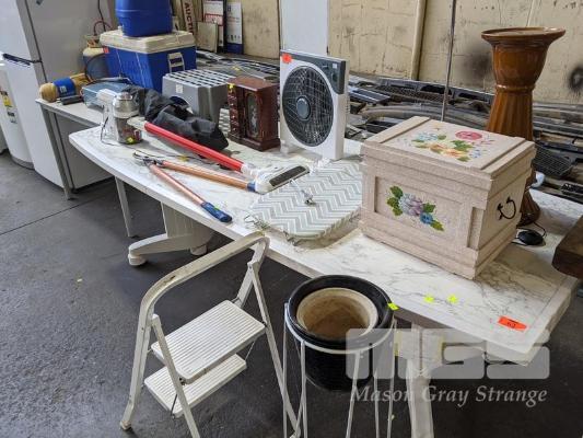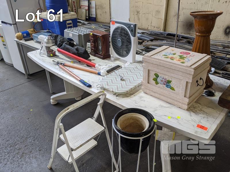 HOOVER STICK VAC, CAMP CHAIR, BOX FAN, JEWELLERY BOX, CERAMIC PLANTER STAND, ETC