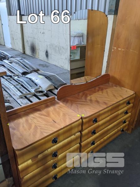 PAIR BEDSIDE DRESSER, 4 x DRAWER 1 WITH MIRROR