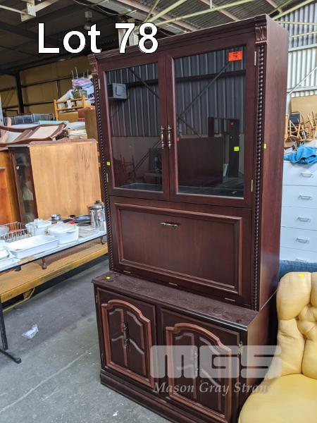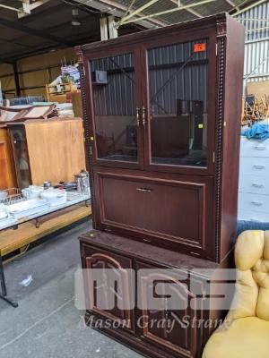 TIMBER COCKTAIL CABINET, 2 DOOR, GLASS TOP SECTION & 2 DOOR UNDERSTORAGE