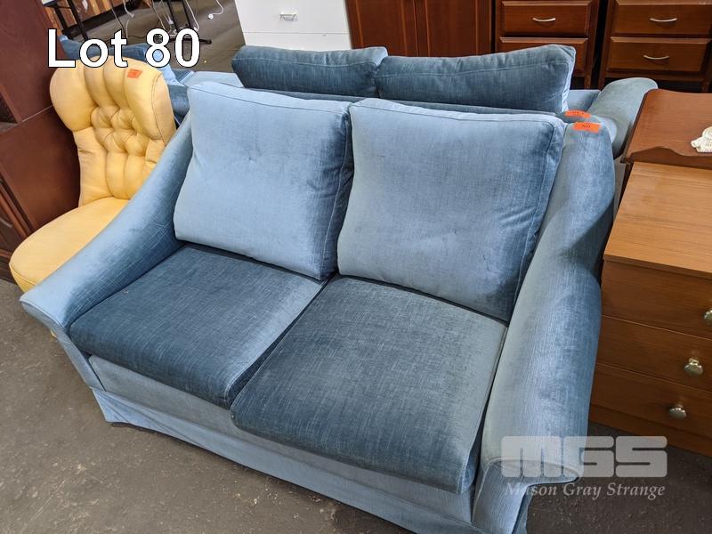 BLUE VELVET UPHOLSTERED 2 SEATER SOFA