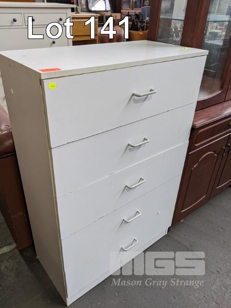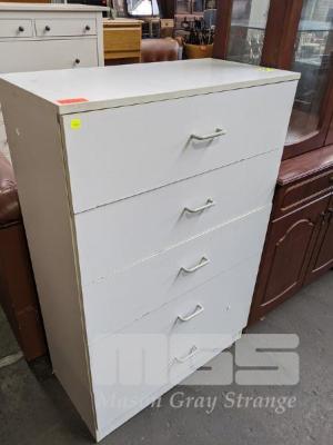 WHITE LAMINATE 5 DRAWER TALLBOY
