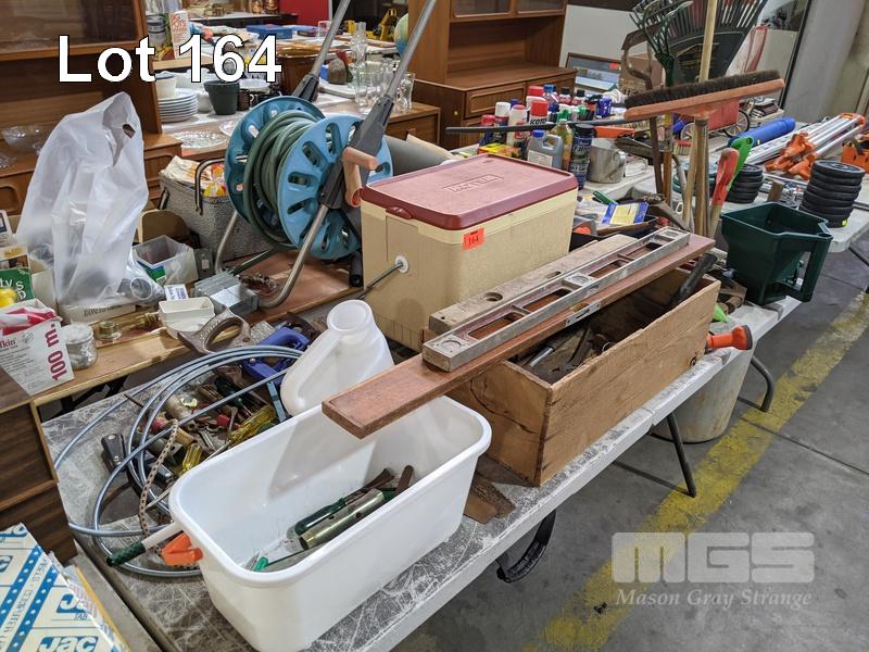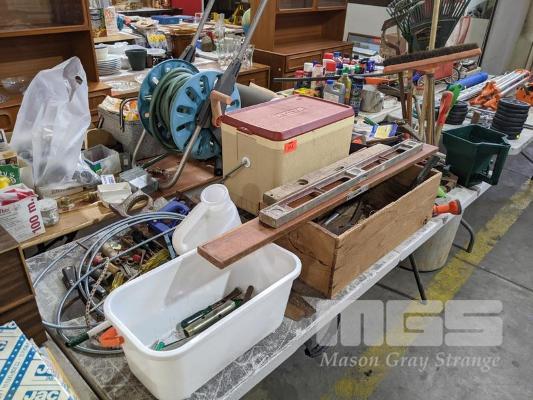 ASSORTED GARDEN TOOLS, HAND TOOLS, HARDWARE & SHED STOCK