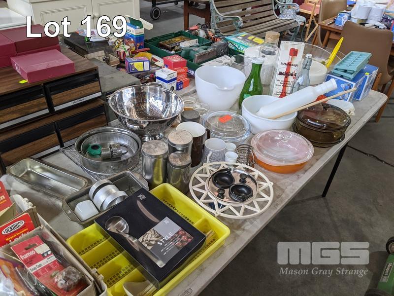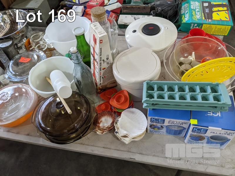 ASSORTED KITCHENWARE, PYREX, PLASTICWARE, ETC