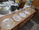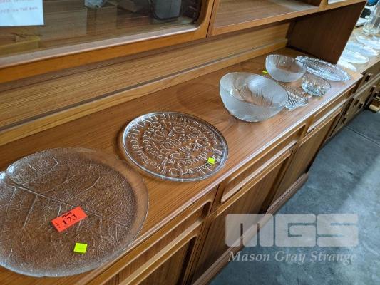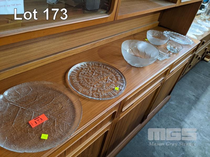 COLLECTION OF GLASS FLATWARE, PLATTER PLATES, VASES, ETC
