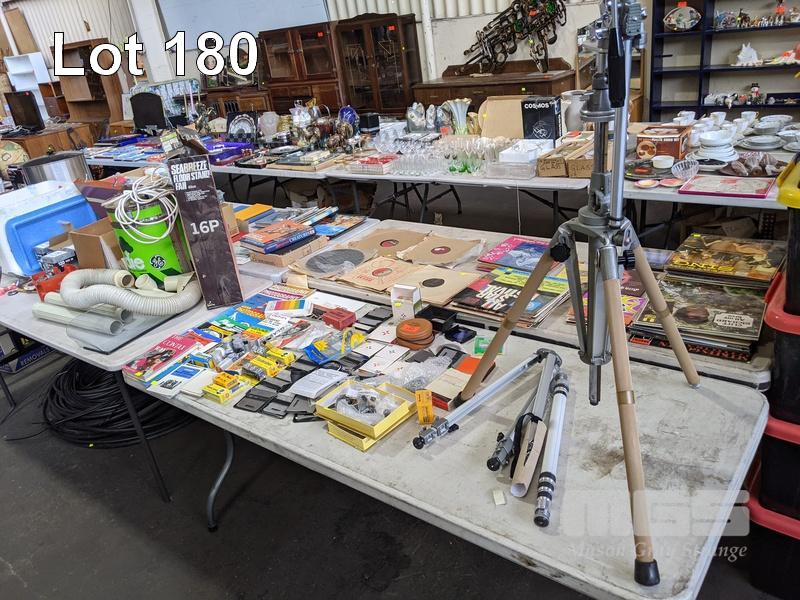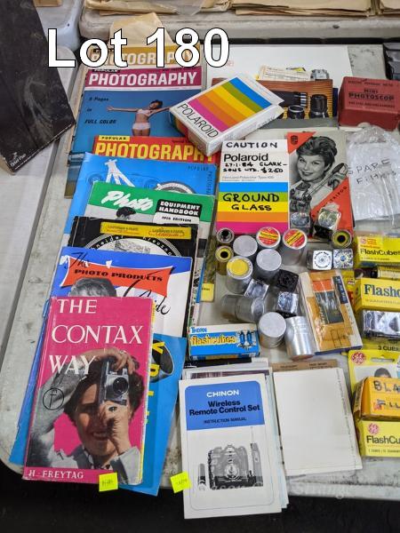 ASSORTED PHOTOGRAPHIC EQUIPMENT, INC VELBON TRIPOD, COVERS, FLASH CUBES, MAGAZINES, ETC