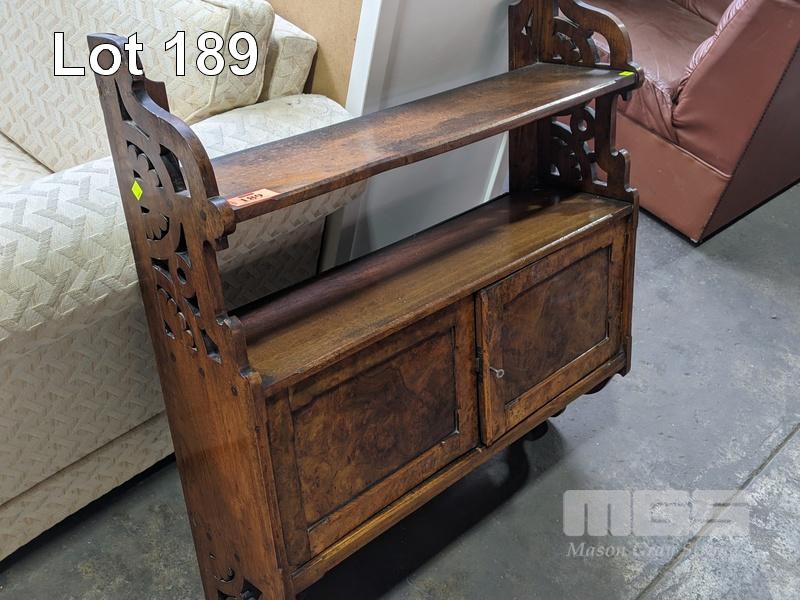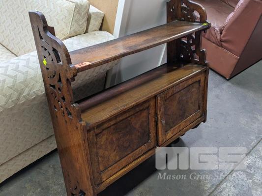 MAHOGANY WALL SHELF UNIT WITH 2 DOOR UNDERSTORAGE