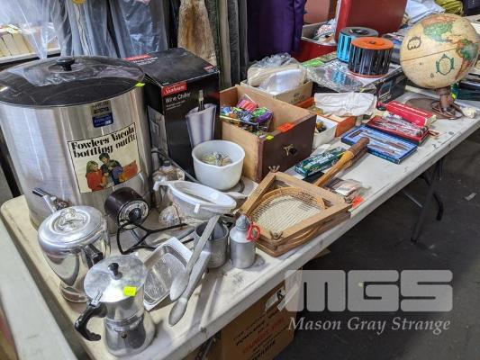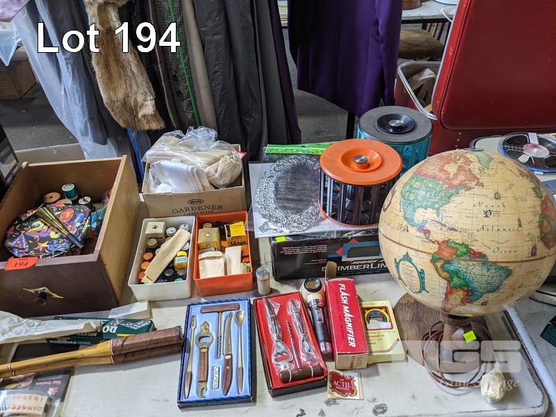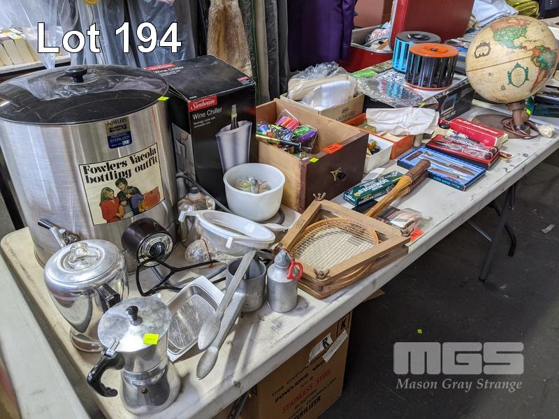 ASSORTED HOMEWARES, WORLD ANTIQUE SPOT GLOBE, ASSORTED INKS, SEWING & PARTY SUPPLIES, WINE CHILLER, FOWLERS VACOLA PRESERVING STERILIZER, ETC